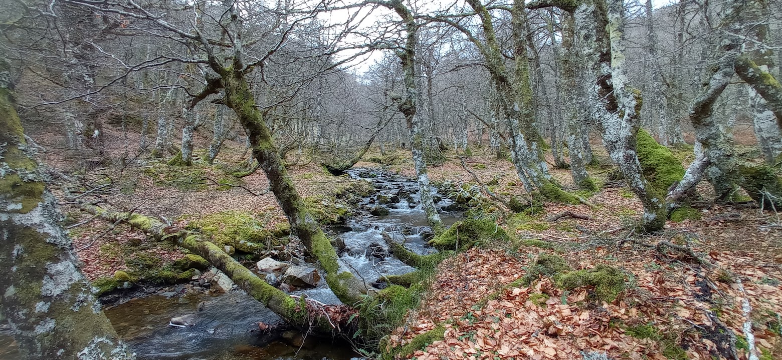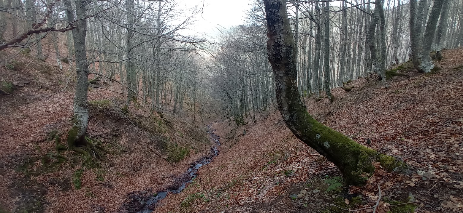 Salvo de pasar per carretera y ver el fayéu, enxamás metiérame pel monte Forcos y según vamos caleyando, lo guapu del camín, lo sanu y llimpiu del fayéu, va ganándonos, asemeyándose a los meyores fayeos que pudimos cruciar na nuesa vida, quedándonos con ganes de conocelu en plena primavera o seronda y non nesta dómina post-iverniega con tol monte peláu.