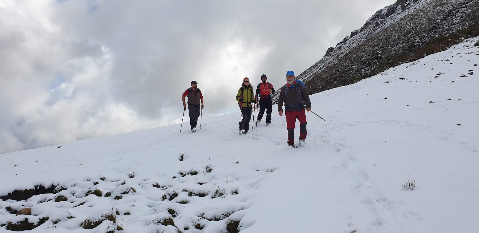 Ascendemos a la Peña Niañu pente la ñeve y tierra quemada