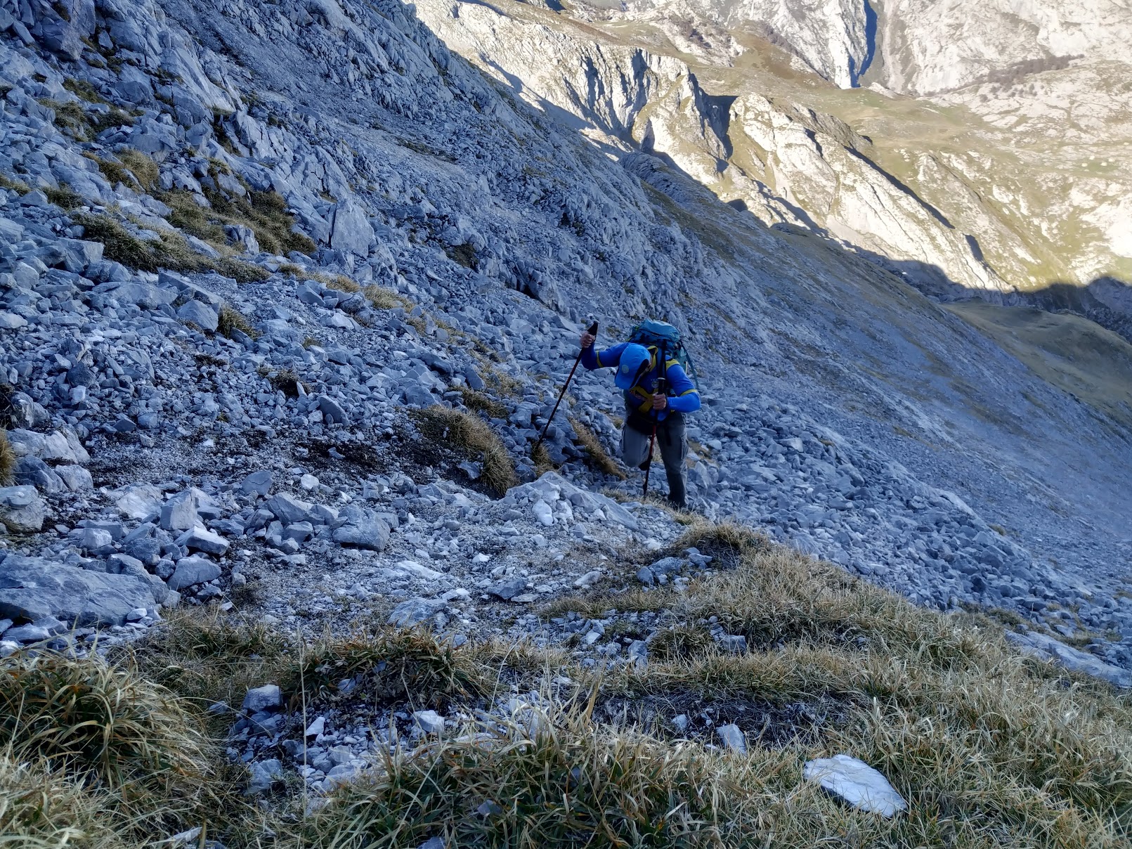 Casi 3 hores de ruta, amuesen lo duro y abegoso del tarrén nel que nos movemos y entá quédanos salir hacia la panda interminable que ye la fastera norte del Cuetu d'Albu. Poro, facemos el pasu d'Orandi hacia'l Bobiu y agachamos les oreyes a la gueta del meyor senderu que nos faiga dir ganando desnivel pali pali.