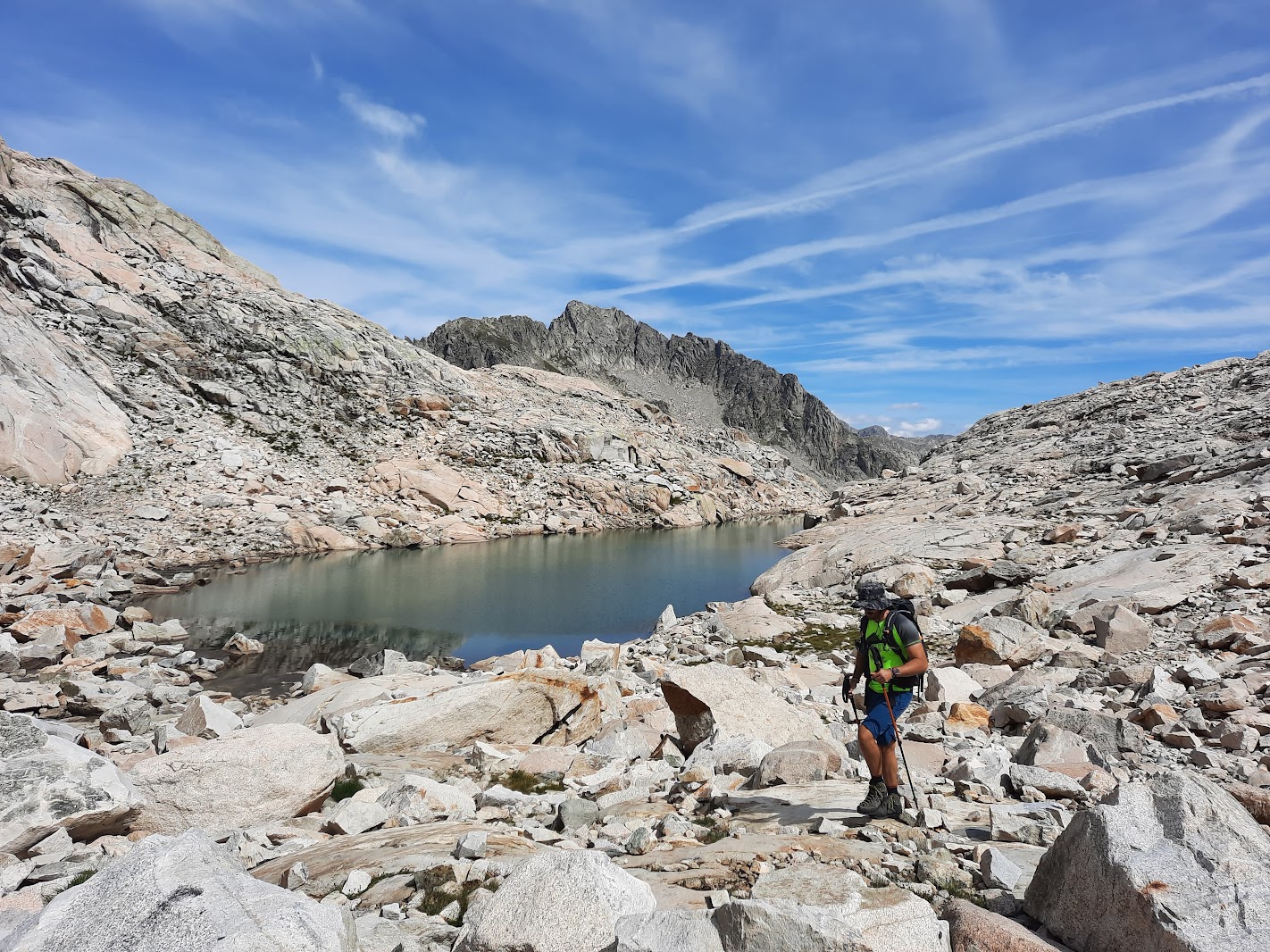 Tamos saliendo de los Estanys Gelats a los Estanys de Gémena y vamos ablucaos cola belleza del llugar. Sin duda, Fernan sabía porque allargar la circular pa descender per Gémena, nun lo damos a sacar semeyes, pero como siempre velo en direutu ye otru rollu completamente.