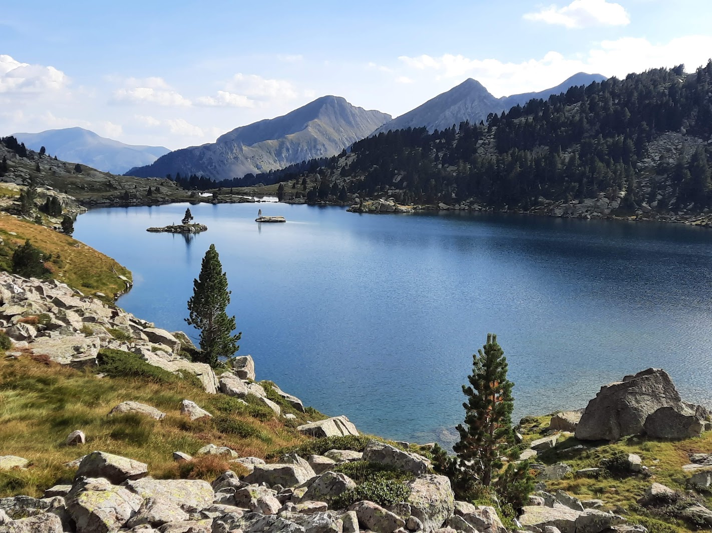 Na colladina, daremos un descansín merecíu, ya que llevamos 3 hores de patéu ya y coles increyibles vistes de la Punta Alta de Comalesbienes y dellos estanys de Tumeneia, vamos dir negociando camín más pedregosu hasta aportar al primer estany de Comaloformo, onde entamamos a ver lo que quédanos per delantre, que ye una pedrera infame de bloques de mediu tamañu, que faen l'avance pelín abegosu.