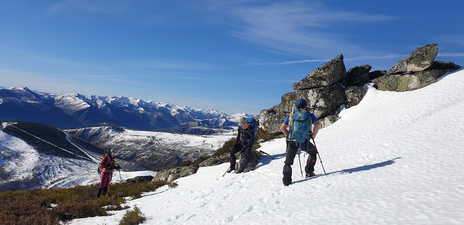 Travesaremos un tramu de vallines, col envís de ganar l'arista que ya tien de llevanos hacia'l Muxivén y una vegada que tamos nella, tan sólo toca dir abriendo buelga y esfrutar de les vistes, ya seya hacia la fastera somedana y babiana al oriente o pal occidente, alloriando con toles opciones ivernales nos montes de Degaña, Ibias, Cangas del Narcea, L.laciana.... una auténtica pasada.