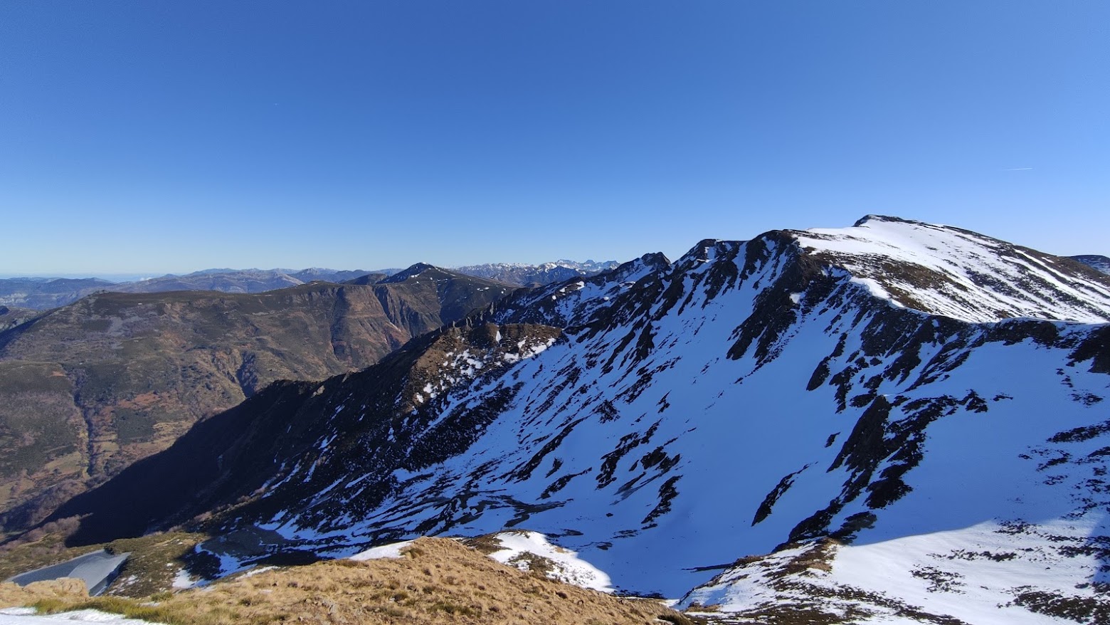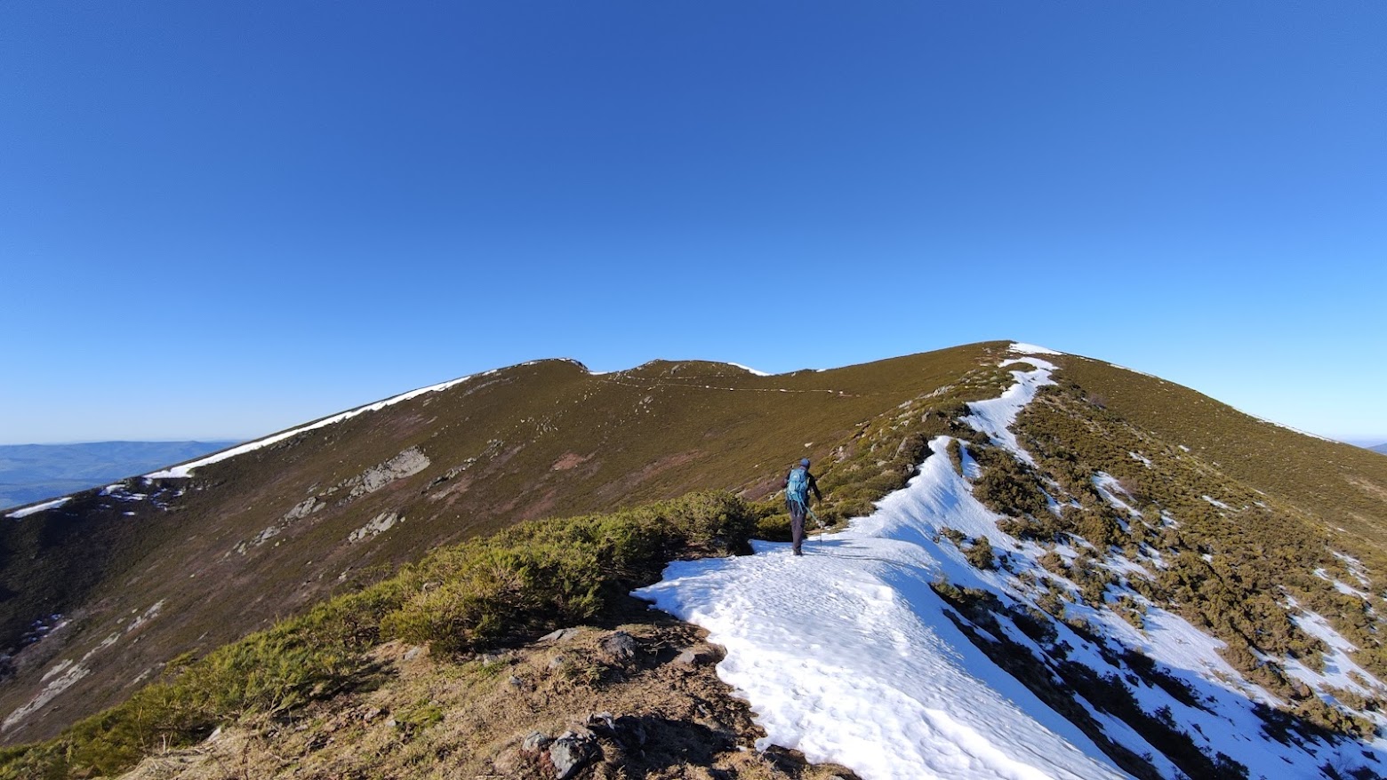 Llueu de facer un altu nel camín, acolumbramos a lo lloñe, quiciás mui lloñe, el siguiente oxetivu que nun ye otru que'l Rabu L'Asnu. Demientres, camentamos si va danos tiempu o non, continuamos crestiando en descensu con un día brutal, per claru, acolumbrando tol macizu de Penubina y hasta los Picos al fondo... una pasada.
